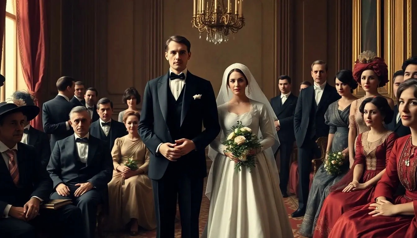 Specific elements of the painting draw attention to the emotional distance between the couple. Facial expressions reveal discomfort and indifference, reflecting the challenges posed by their unequal status. A wedding setting reinforces traditional expectations, yet the surroundings suggest an impending conflict between love and propriety. Engaging viewers, the artwork presents itself as a commentary on the constraints imposed by society on personal relationships.